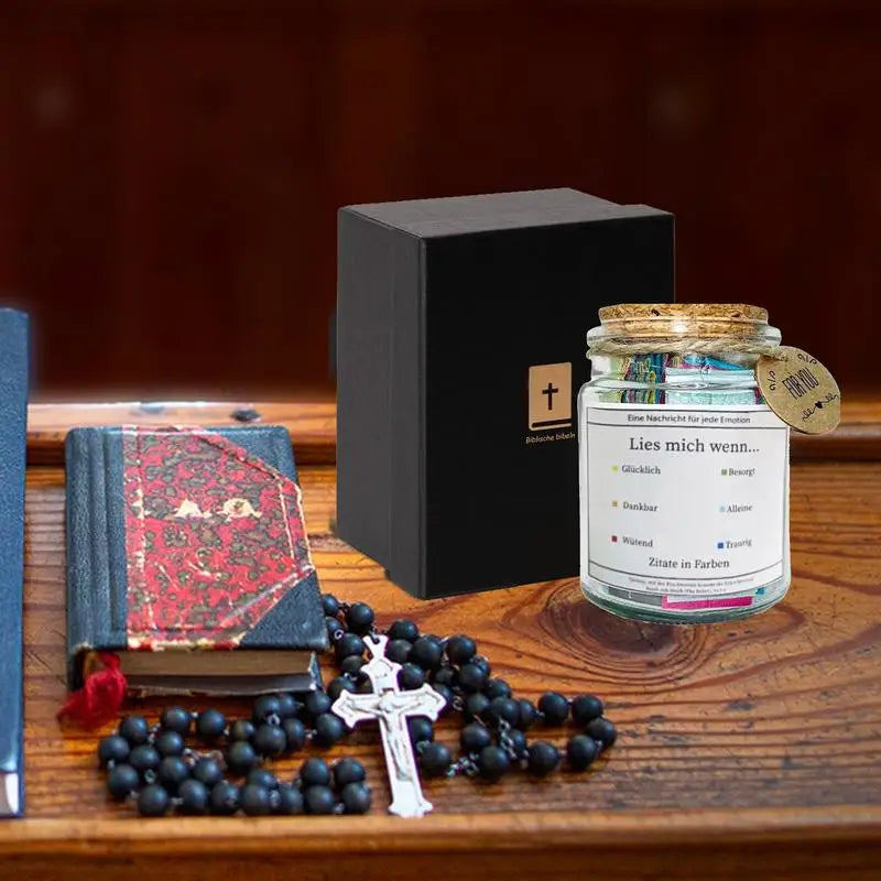 5.Long-Lasting: Lift your daily routine with our Bible Verses in a Jar set. Featuring excellent glass and scripture strips made of high-quality paper, covered in a stylish black present box, and designed for long-term use with a protective film that prolongs life and maintains clarity, this set adds a touch of elegance to any space.